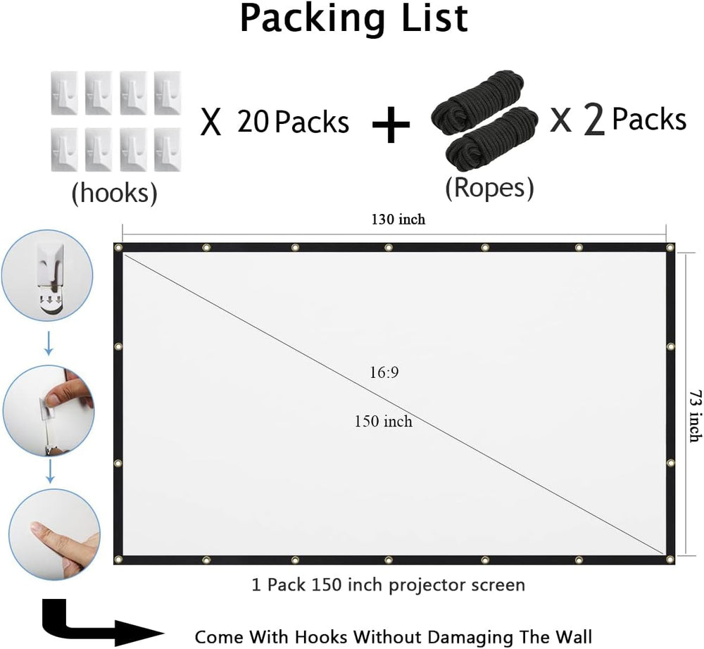 Transform any space into a cinematic experience with this incredible 150-inch portable projection screen, designed for clarity, convenience, and captivating visuals, perfect for both home and professional use.